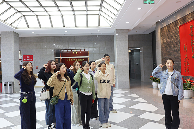 在紀(jì)念館廣場(chǎng),全體團(tuán)員青年面向團(tuán)旗整齊列隊(duì),團(tuán)支部書(shū)記領(lǐng)誓重溫入團(tuán)誓詞。“我志愿加入中國(guó)共產(chǎn)主義青年團(tuán)......”鏗鏘有力的誓言回蕩在文瀛湖畔,與百年前省立一中學(xué)生“外爭(zhēng)主權(quán)、內(nèi)懲國(guó)賊”的吶喊形成歷史回響。隨后舉行的“青春向黨”微宣講中,青年職工代表結(jié)合地勘工作實(shí)際,分享了“把青春寫(xiě)在祖國(guó)大地上”的奮斗故事。“地質(zhì)工作者的“三光榮”精神與五四精神一脈相承,我們要在野外勘探中踐行“永久奮斗”的青春誓言”。