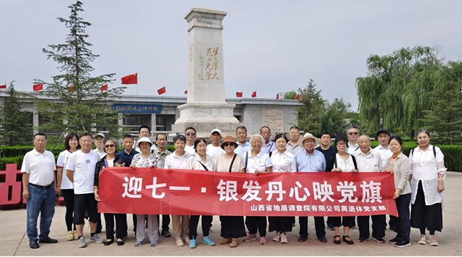 為慶祝中國共產(chǎn)黨成立104周年,深入學(xué)習(xí)貫徹習(xí)近平新時代中國特色社會主義思想,傳承紅色基因,賡續(xù)革命精神,山西省地質(zhì)調(diào)查院有限公司離退休黨支部組織老黨員赴汾陽賈家莊紅色教育基地和文水劉胡蘭紀念館,開展“迎七一 銀發(fā)丹心映黨旗”主題黨日活動。