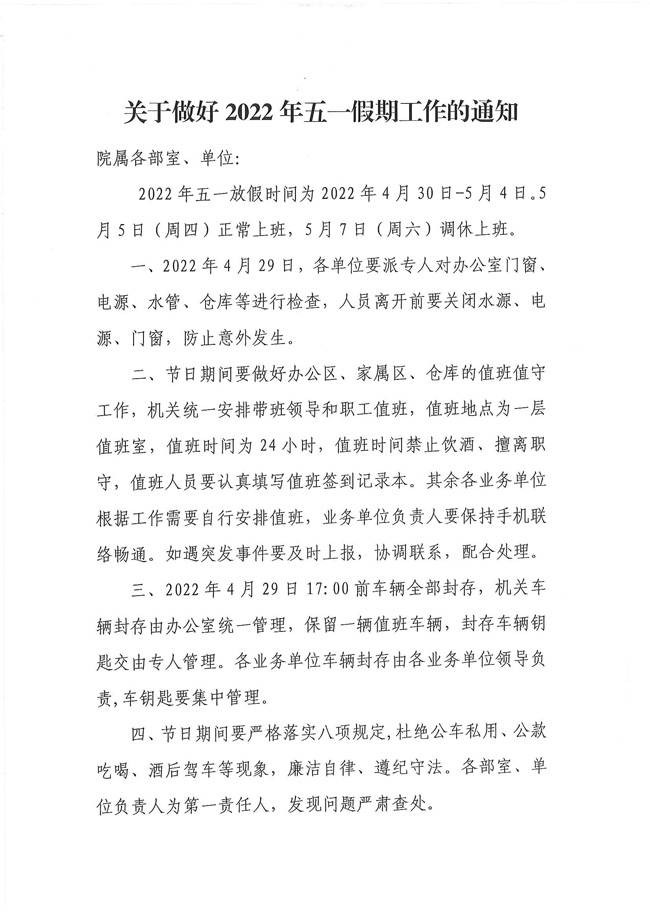 關(guān)于做好2022年五一假期工作的通知