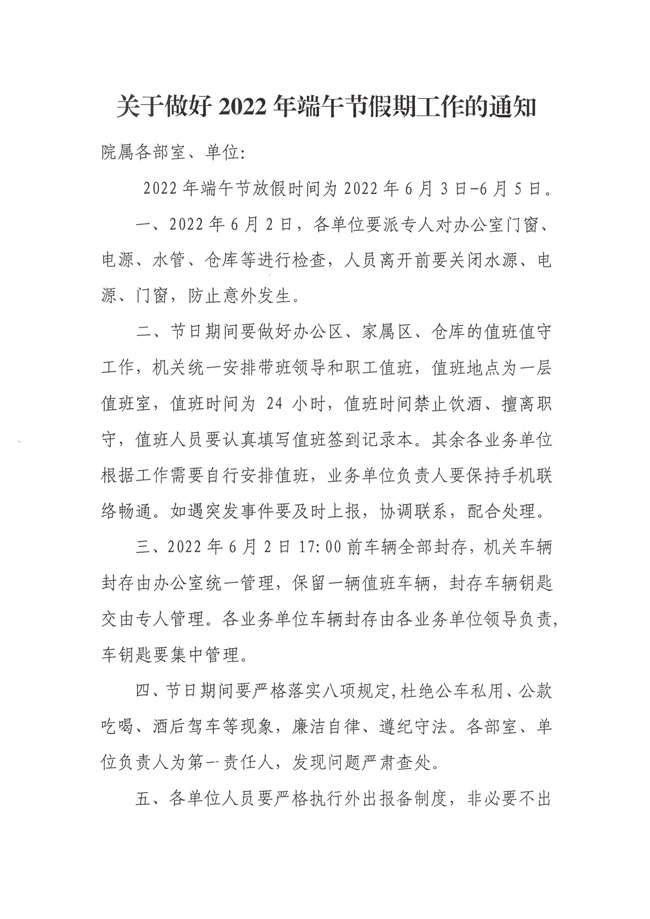 關(guān)于做好2022年端午節(jié)假期工作的通知
