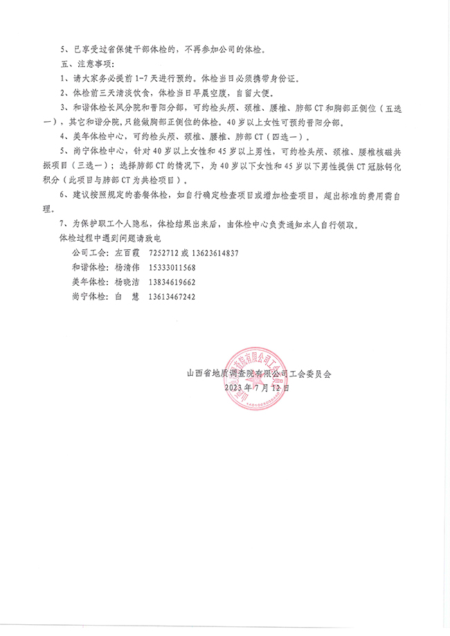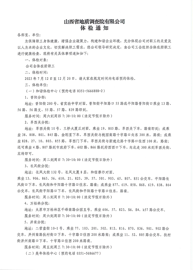 2023年健康體檢通知