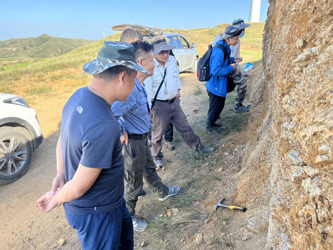 在野外,王教授主要對地表見礦探槽及鉆孔巖心進(jìn)行了仔細(xì)觀察,現(xiàn)場與技術(shù)人員進(jìn)行了充分溝通,提出了許多新觀點(diǎn),新認(rèn)識。在聽取匯報和野外實地勘查后,王教授根據(jù)自己對金礦的認(rèn)識與技術(shù)人員進(jìn)行交流,王權(quán)總工介紹了晉西北地區(qū)金礦近些年來的找礦成果及實際勘查中遇到的困難與問題,而后大家圍繞山西金礦地質(zhì)勘查主要方向進(jìn)行了研討,雙方均表示將充分發(fā)揮各自優(yōu)勢,挖掘合作潛力,加快實現(xiàn)金礦找礦突破。