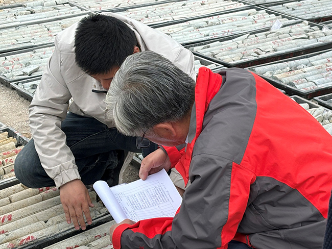監(jiān)理組首先聽取了項(xiàng)目負(fù)責(zé)關(guān)于項(xiàng)目進(jìn)展、鉆探成果和項(xiàng)目質(zhì)量體系運(yùn)行情況的簡要匯報,詳細(xì)檢查了各項(xiàng)原始地質(zhì)資料,后赴野外實(shí)地抽查了鉆孔ZK2-2、ZK-2-1施工質(zhì)量、地質(zhì)編錄和采樣情況,并對鉆孔巖芯的礦化蝕變進(jìn)行了詳細(xì)觀察。