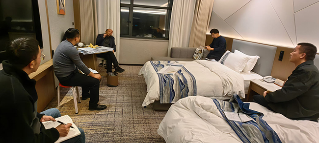 在項目駐地,項目負責(zé)匯報了項目進展及質(zhì)量體系運行情況,隨后赴野外實地檢查了儀器操作、工作部署等內(nèi)容,專家組與項目技術(shù)人員就重力勘探相關(guān)技術(shù)方法進行了交流。