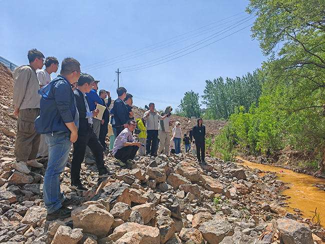 考察期間,團(tuán)隊(duì)先后實(shí)地調(diào)研了躍進(jìn)煤礦巖溶鉆孔串層污染點(diǎn)、露天1號(hào)積水坑治理點(diǎn)、老窯水溢流點(diǎn)和巖溶滲漏段等關(guān)鍵區(qū)域。老窯水治理項(xiàng)目負(fù)責(zé)人詳細(xì)介紹了當(dāng)前老窯水污染的主要問題及已采取的修復(fù)治理措施,并針對(duì)老窯水治理體系、巖溶含水層結(jié)構(gòu)、地下水污染遷移等議題展開討論。