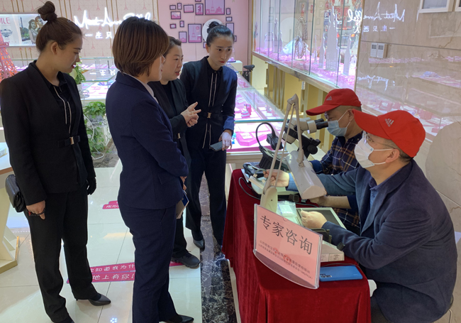 隨著我國經濟的不斷發(fā)展,珠寶首飾正在成為我國老百姓的消費熱點,近年來雖然產值連年上升,但不斷出現產品質量參差不齊的問題。正值“3.15消費者權益日”,地調院學雷鋒志愿服務隊--“貴金屬與珠寶玉石檢測中心”的專家隊員們,運用自身專業(yè),聯合長治市金大福珠寶開展了“為消費者免費鑒定珠寶玉石”志愿服務活動。