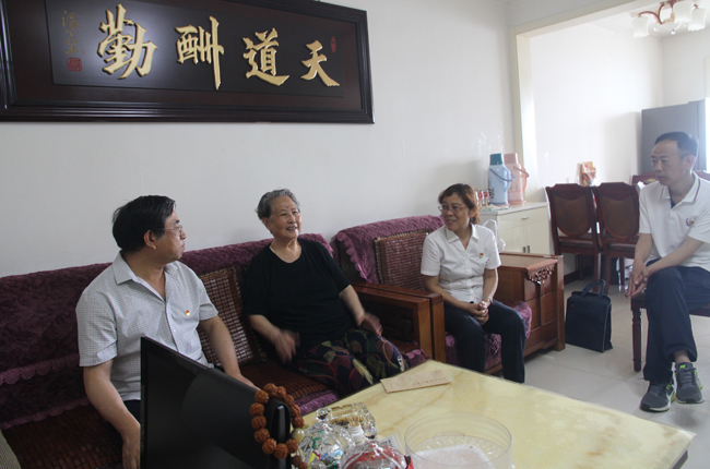 張京俊書記一行首先來到學府街地礦小區(qū)83歲的老黨員陳家研家中,認真詢問她的身體狀況以及家庭生活情況,鼓勵她保重身體、對她積極向上的樂觀精神表示充分的認可與贊譽,并鼓勵她患重病的兒子張杰要堅定信心,保持良好心態(tài),安心養(yǎng)病。