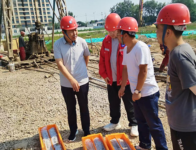 檢查過程中,郭紅黨對(duì)項(xiàng)目部全體作業(yè)人員的辛勤付出表示充分肯定,他對(duì)保質(zhì)保量完成好項(xiàng)目提出要求:一是要嚴(yán)格按照項(xiàng)目實(shí)施方案施工,嚴(yán)格執(zhí)行相關(guān)技術(shù)標(biāo)準(zhǔn),全力打造質(zhì)量優(yōu)、形象好的精品工程;二是要加強(qiáng)現(xiàn)場管理,嚴(yán)格執(zhí)行地質(zhì)集團(tuán)《標(biāo)準(zhǔn)化工地實(shí)施細(xì)則》各項(xiàng)要求,堅(jiān)決做到工完、料盡、場地清;三是項(xiàng)目全體人員必須時(shí)刻緊繃安全生產(chǎn)之弦,筑牢安全生產(chǎn)防線,加強(qiáng)日常安全檢查,務(wù)必將安全隱患消滅在萌芽狀態(tài);四是項(xiàng)目負(fù)責(zé)人要科學(xué)組織施工,合理安排工作人員調(diào)休,嚴(yán)禁疲勞作業(yè)。